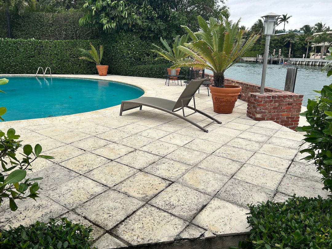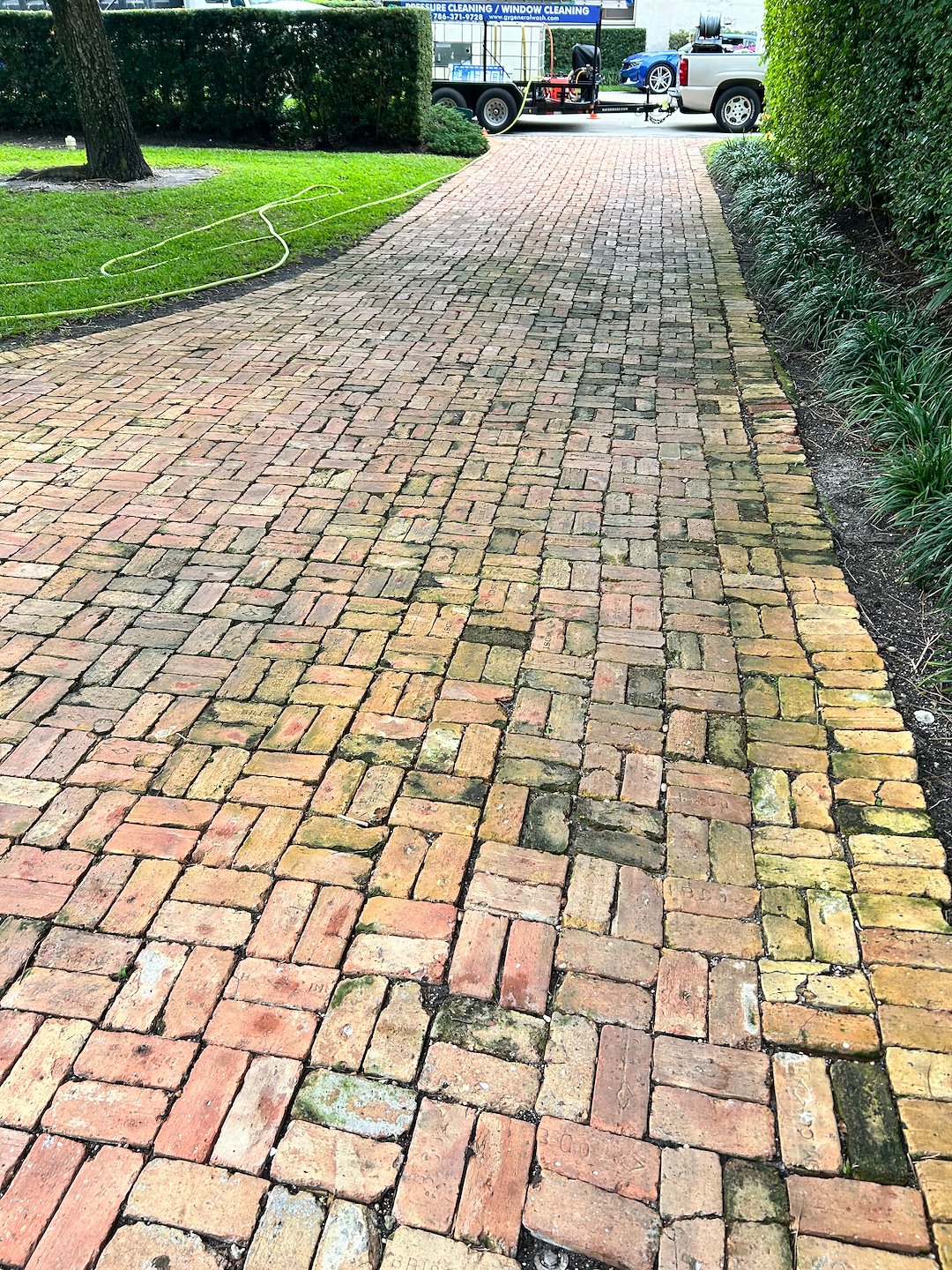 Patio/pool-deck & brick driveway soft-washing in Miami-Sunset Islands