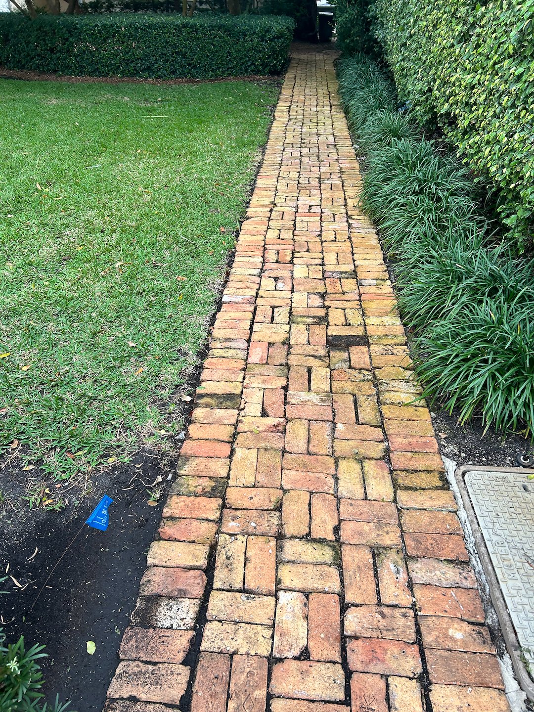 We removed the organic staining which is very common in Miami's humid climate, on the brick driveway as well on the pool deck. There was no high pressure used only soft-washing with low-pressure rinsing to prevent any damage to the surfaces.